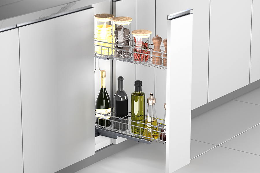 이것은 기본 캐비닛을 위한 가장 인기 있고 다양한 주방 수납 액세서리입니다.. 인출식 와이어 바스켓이 슬라이드에 장착되어 부드럽게 굴러갑니다., 당신에게 모든 것을 가져다주는.